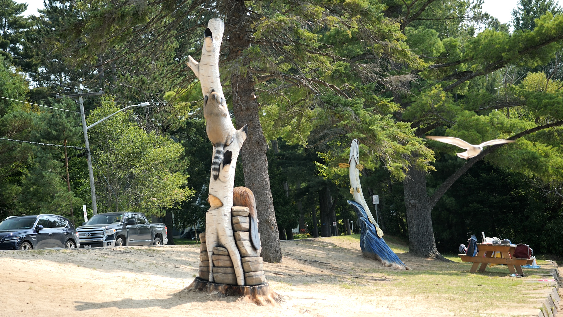 Iconic Dwight Beach is now home to two unique carvings, crafted by world-class chainsaw carving talent Jake Rhodes of Northern Rhodes Artistry in Wood. These impressive works were carved from eastern white pines that needed to be cut down the year prior.