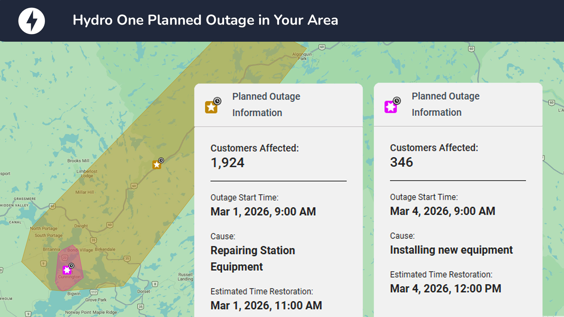 Planned Hydro One Power Outage on March 1 and 4